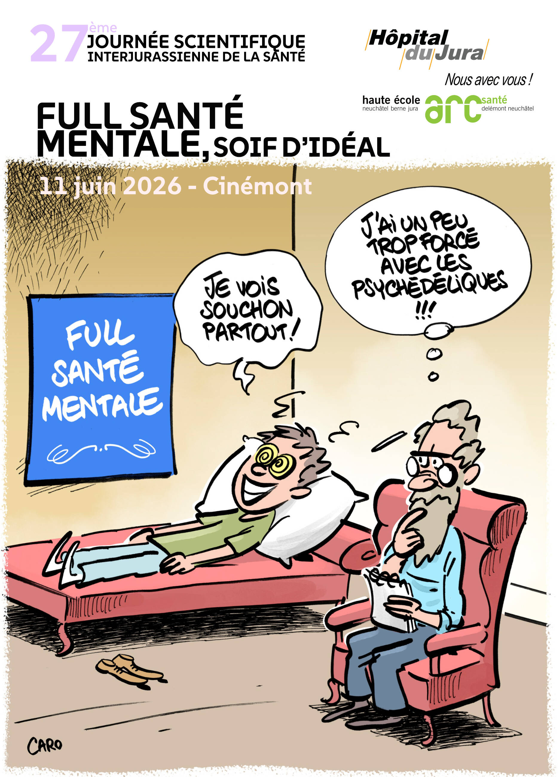 Nous sommes très heureux de vous proposer le programme de la 27ème journée scientifique interjurassienne de la santé intitulée, "Full santé mentale, soif d'idéal". Nous aborderons différentes thématiques liées à la santé mentale.